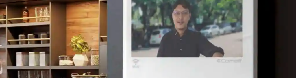 Equipado com um *ecrã a cores de tamanho compacto, garante imagens nítidas dos visitantes. O sistema de áudio mãos-livres (altavoz) proporciona comunicação clara e eficiente, tornando a interação rápida e confortável.